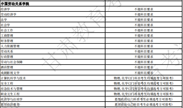 近日,中国劳动关系学院2024年拟在甘肃的招生专业选考科目要求公布,admw360高考复读学校整理了相关信息,分享给同学们参考。详情如下: