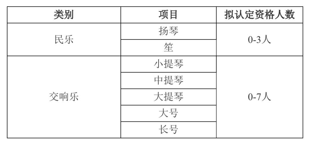 北京理工大学招生办副主任张瑞介绍,今年学校高水平艺术团招生类别包括民乐、交响乐两大类别,招生计划为5人。学校将本着优中选优、宁缺毋滥的原则进行选拔。