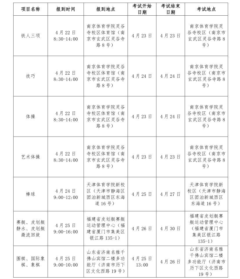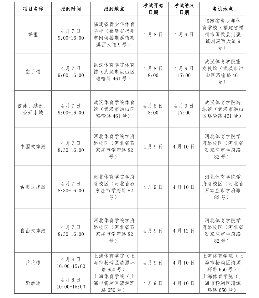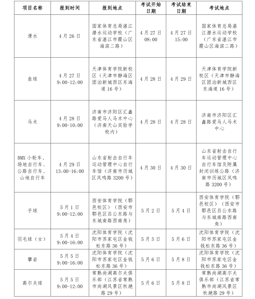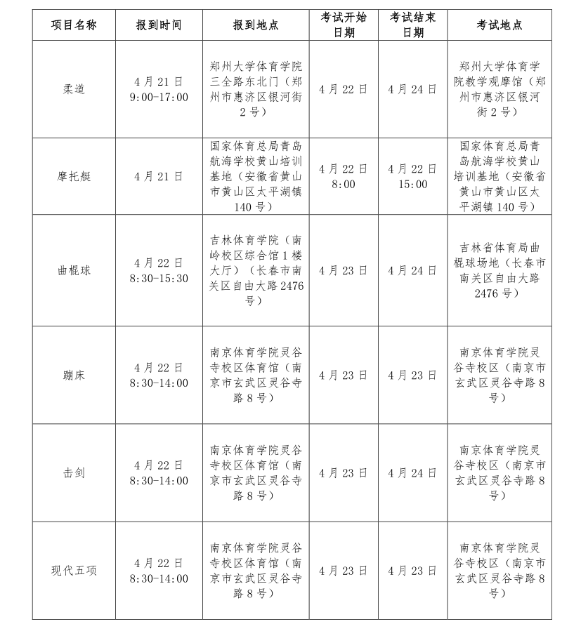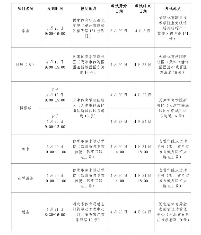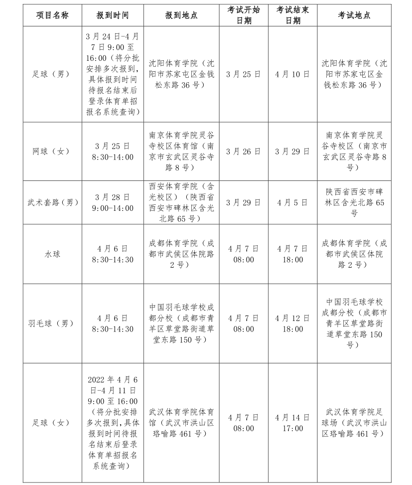 根据《2022年普通高等学校运动训练、武术与民族传统体育专业招生管理办法》及教育部有关要求,现将2022年运动训练、武术与民族传统体育专业招生(简称“体育单招”)夏季项目考试及高校高水平运动队招生部分项目专业测试安排通知如下: