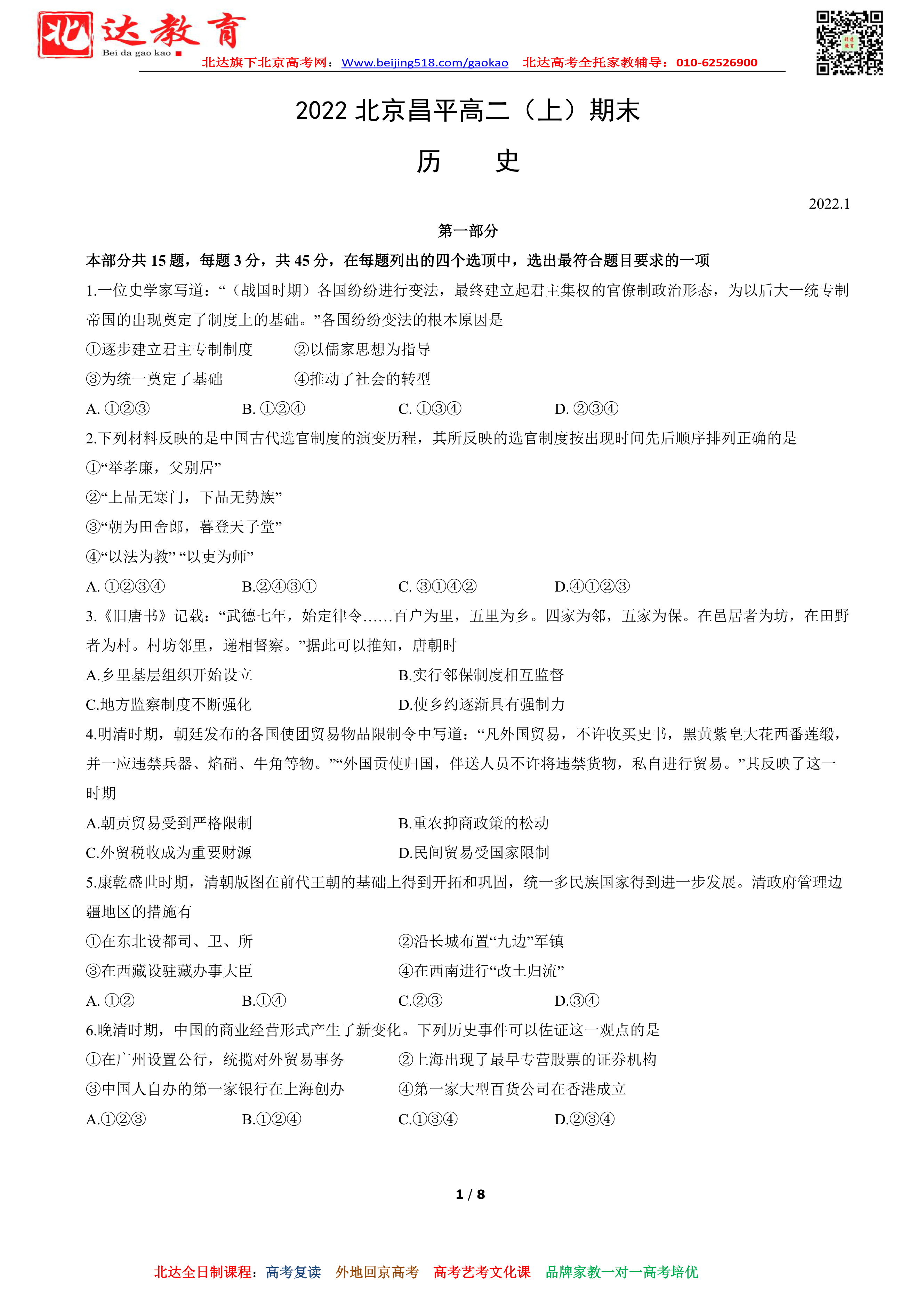 北京各区高二上学期期末考试时间已确定为1月12日-14日,北京各区2022年高二上学期期末考试结束之后,admw360教育教研组将整理相关试题,同学们可以直接下载相关试题及答案。