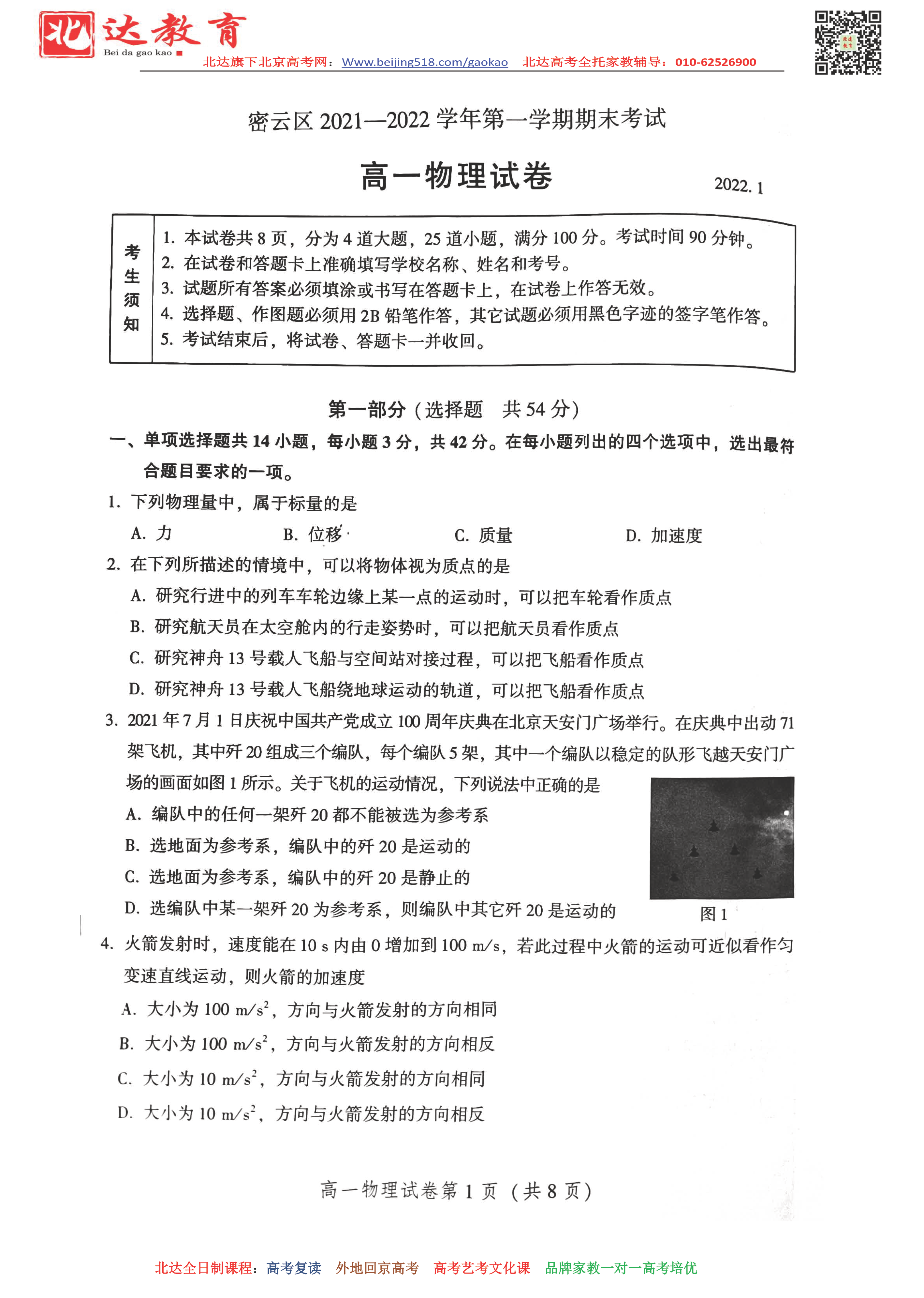 首页 高一资料 北京密云区2022年高一上学期期末物理试题