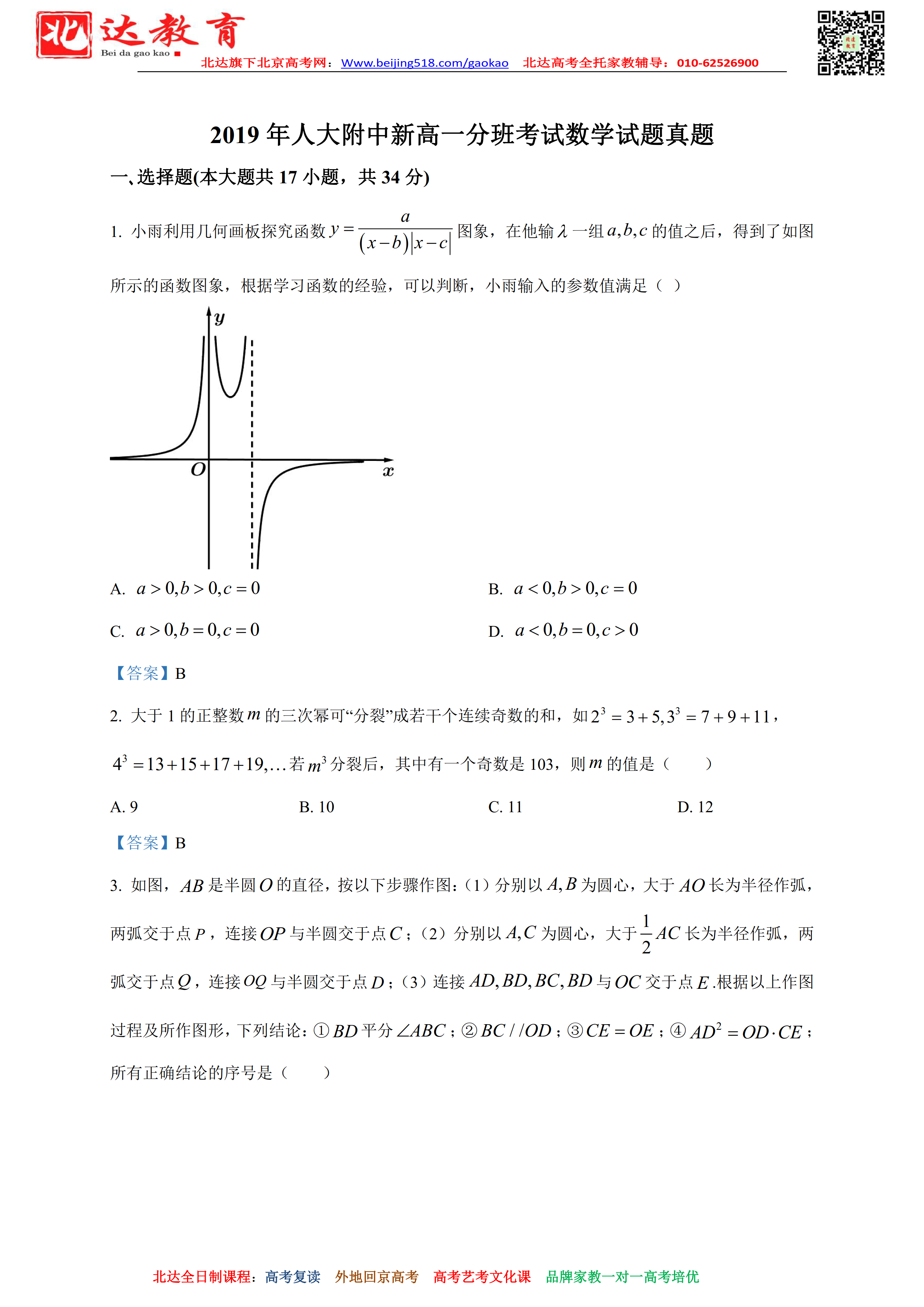 admw360高考复读学校整理了北京人大附中学2019-2020学年高一分班考试数学试题,供大家参考! admw360高考复读、高考外地回京全日制招生通知 ★2022高考复读全日制,应届生全日制,外地…