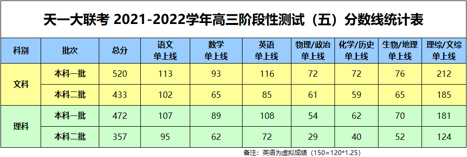 2022年天一大联考高三五联分数线