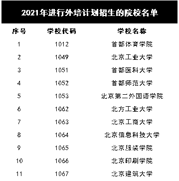 2021年,北京有12所高校组织外培计划招生,下表为具体的院校名单。