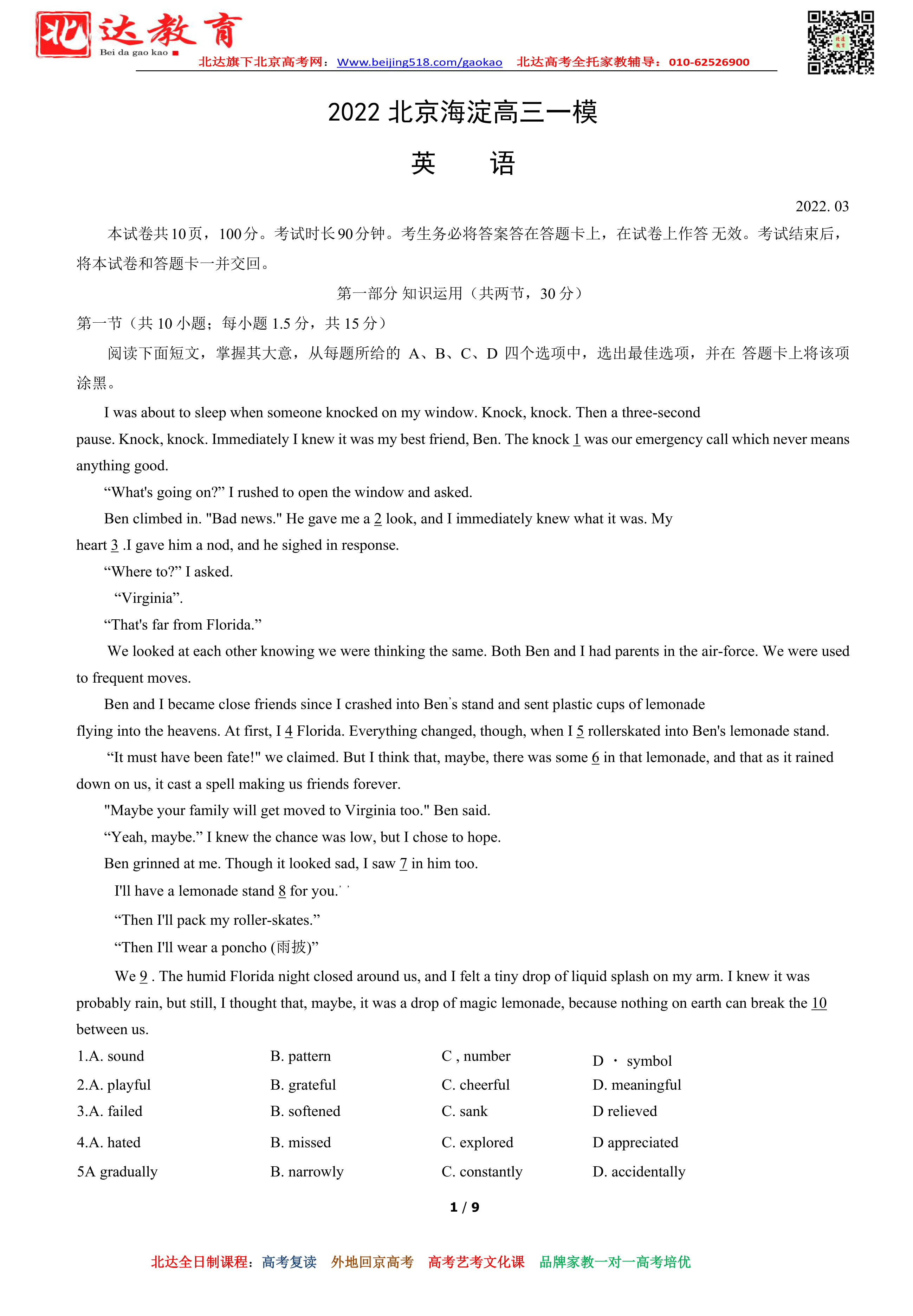 相关推荐:北京各区2021-2022学年高三一模试题及答案汇总