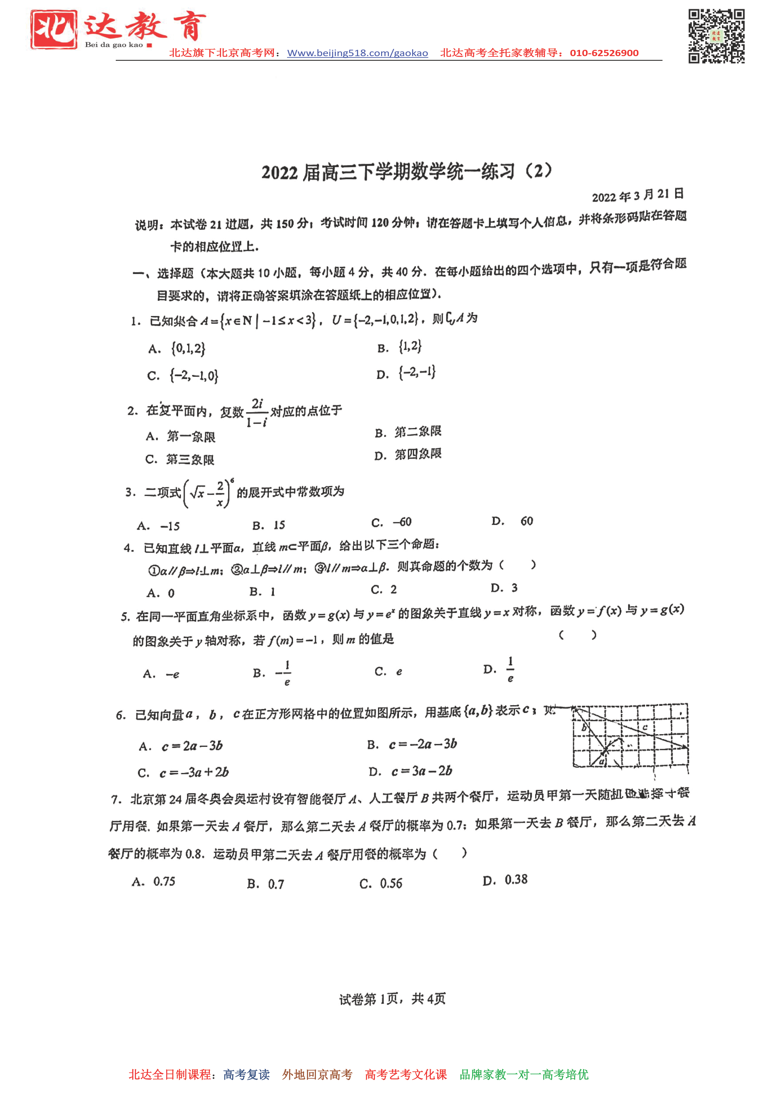 北京高考复读学校整理了北京人大附中2021-2022学年高三零模数学试题及答案,分享给大家!