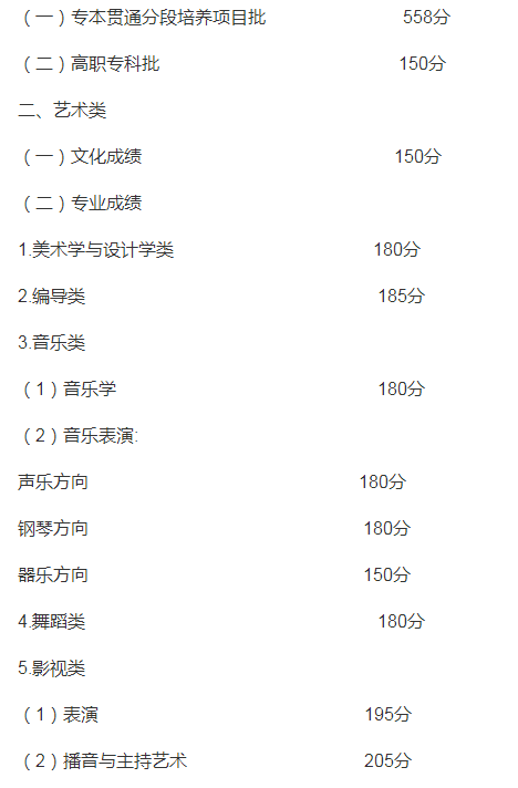 备注:中职类所含应用型本科和高职专科对口招生、中高等职业教育贯通培养项目转段招生录取最低控制分数线,将在相应专业(职业)技能测试完成后划定并公布。