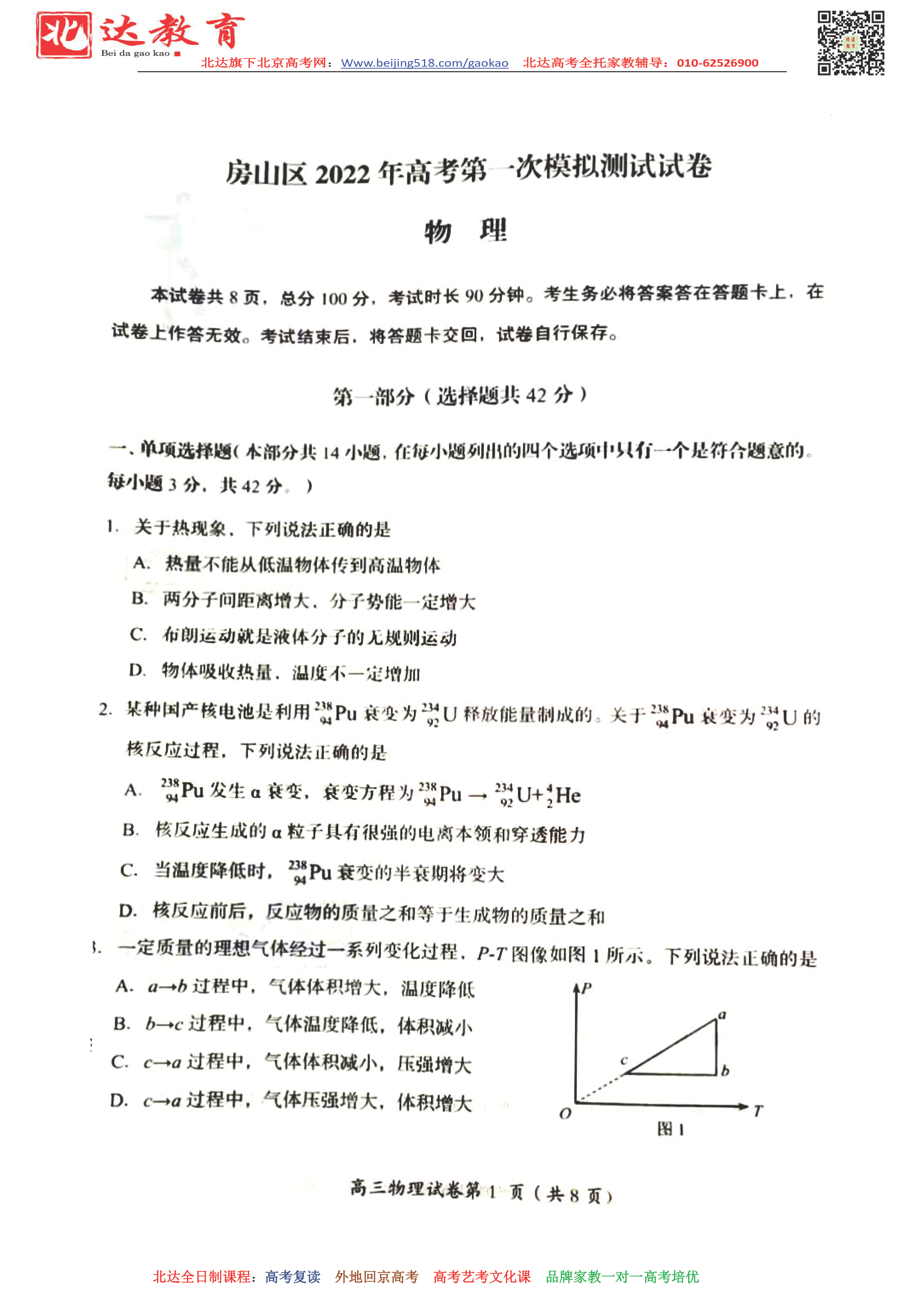 根据安排,3月29日-4月1日,2022年北京房山山举行高三一模考试,一模在形式和题量上更接近高考,因此同学们要格外重视,为了方便同学们下载复习,北京高考复读学校跟进相关试题,详情如下。