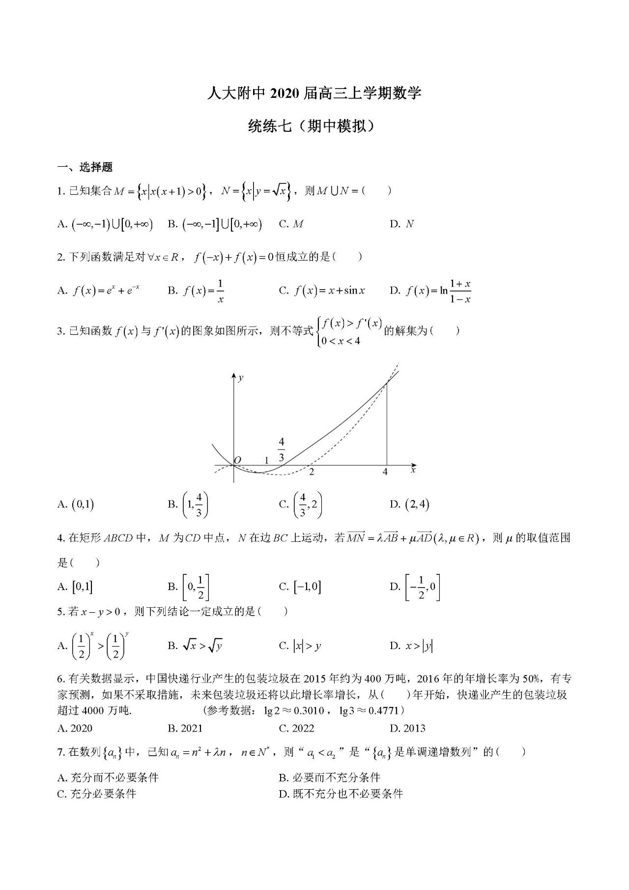 北京admw360复读学校为大家整理了人大附中2020届高三上学期数学统练七期中模拟题,需要的小伙伴赶紧下载吧。