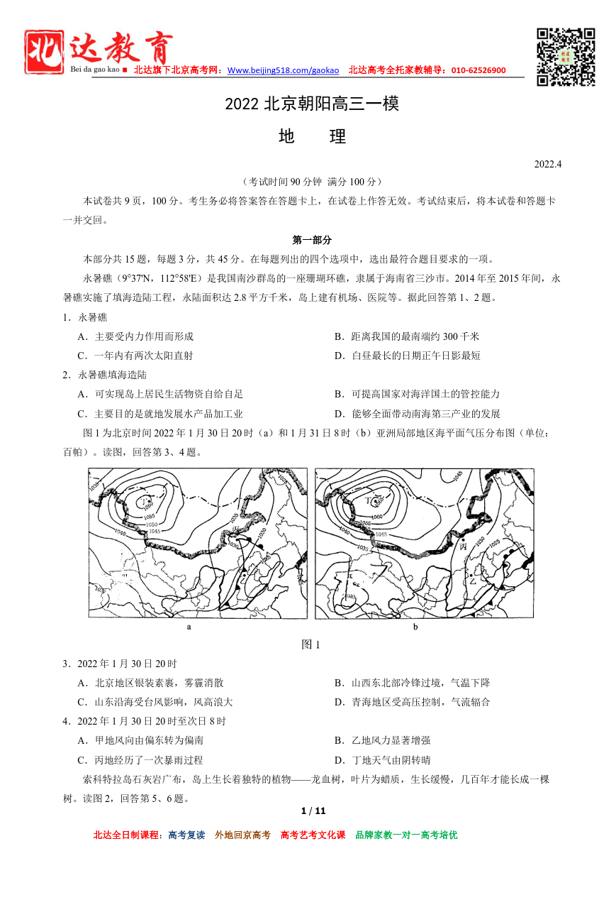 根据安排,3月28日-31日,2022年北京朝阳区举行高三一模考试,一模在形式和题量上更接近高考,因此同学们要格外重视,为了方便同学们下载复习,北京高考复读学校跟进相关试题,详情如下。