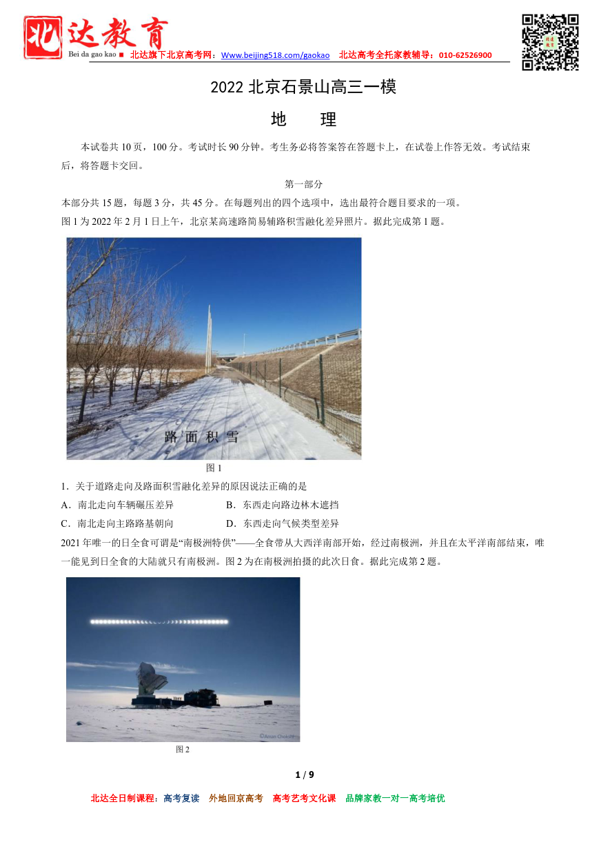 根据安排,3月28日-30日,2022年北京石景山举行高三一模考试,一模在形式和题量上更接近高考,因此同学们要格外重视,为了方便同学们下载复习,北京高考复读学校跟进相关试题,详情如下。