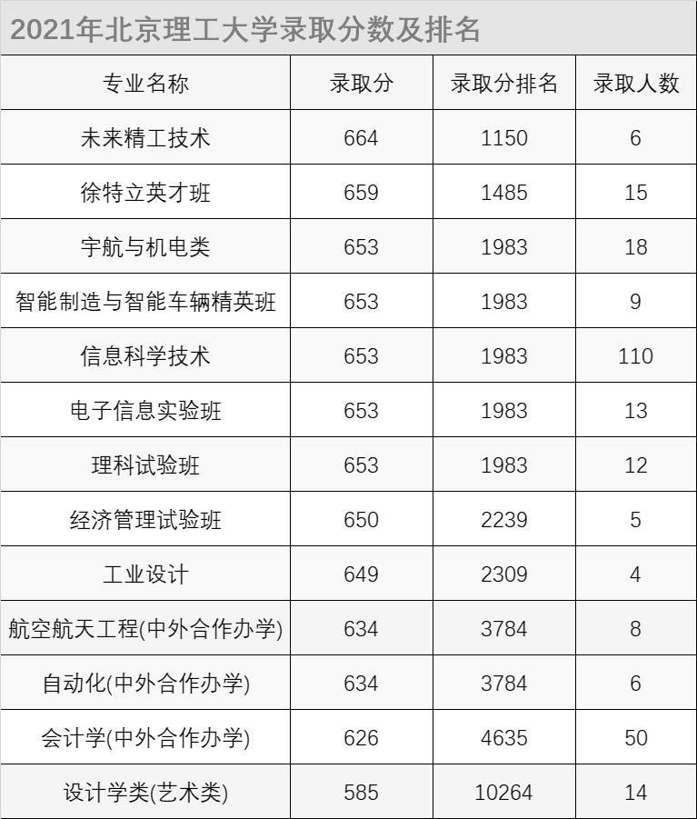 近日,北京admw360教研组为大家整理了2021北京理工大学在京各专业录取分数线及排名,给大家做个参考。 ★2022高考复读全日制,应届生全日制,外地回京全日制采取择优录取原则。 ★招生班…