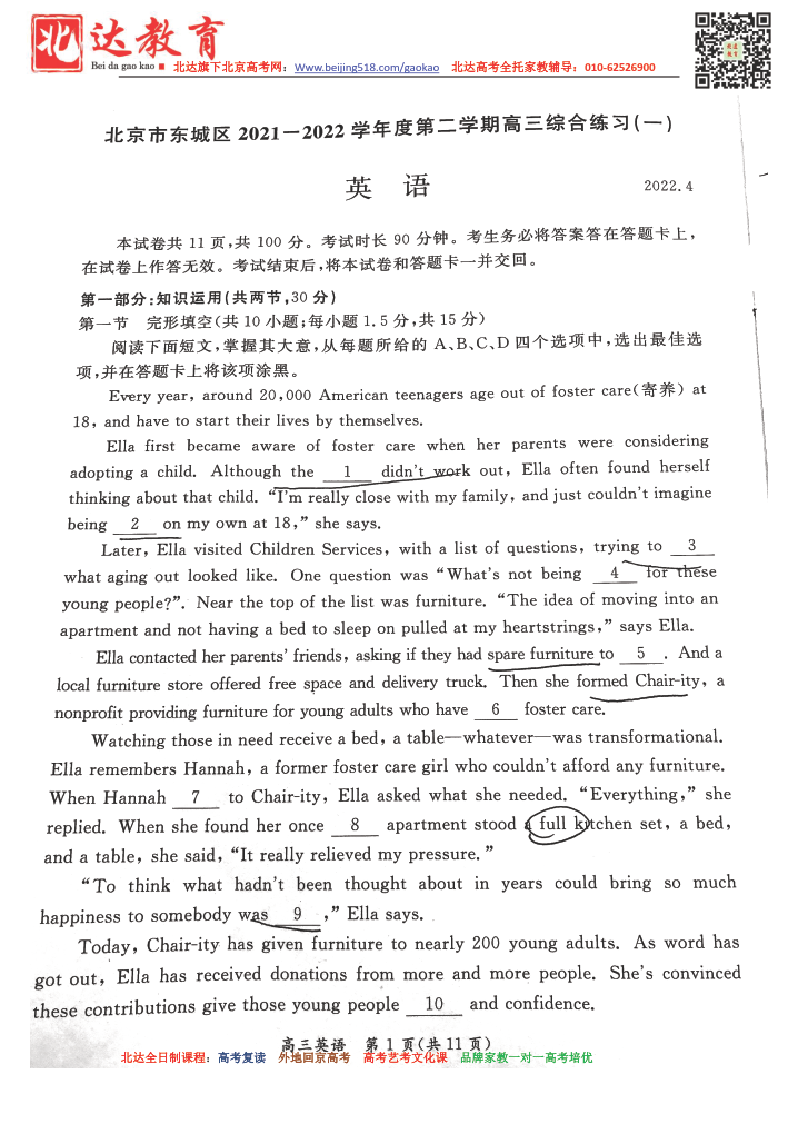 首页 高三资料 北京东城区2021-2022学年高三一模英语试题