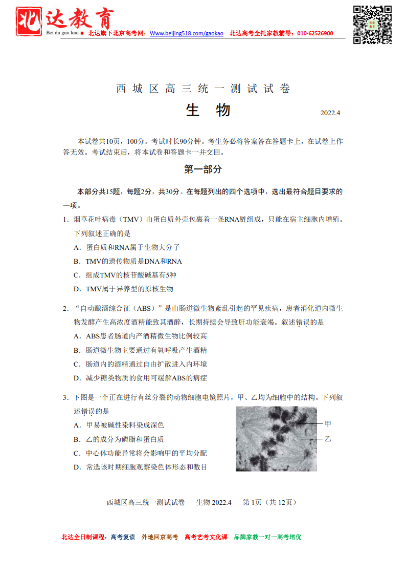 根据安排,3月28日-30日,2022年北京西城区举行高三一模考试,一模在形式和题量上更接近高考,因此同学们要格外重视,为了方便同学们下载复习,北京高考复读学校跟进相关试题,详情如…