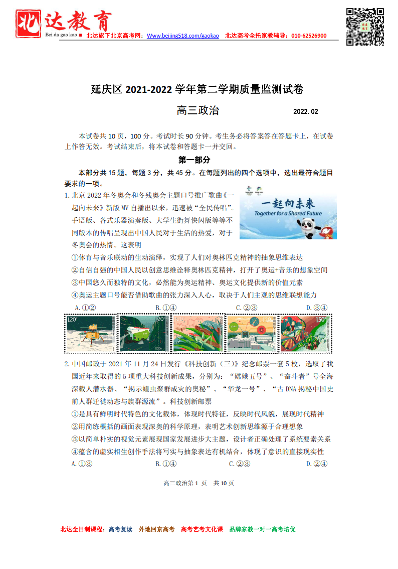 根据安排,3月28日-30日,2022年北京延庆区举行高三一模考试,一模在形式和题量上更接近高考,因此同学们要格外重视,为了方便同学们下载复习,北京高考复读学校跟进相关试题,详情如…