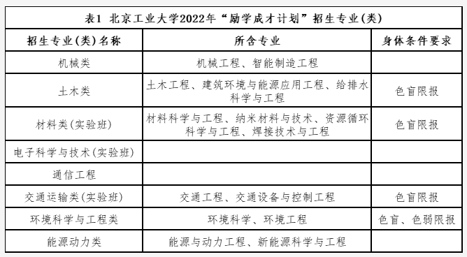 ❖获得资格的考生须参加2022年普通高校招生全国统一考试,且应在考生所在省(区、市)北京工业大学“励学成才计划”招生的专业范围内填报专业志愿。填报方式、填报时间等以生源地省级招生考试主管部门规定为准。