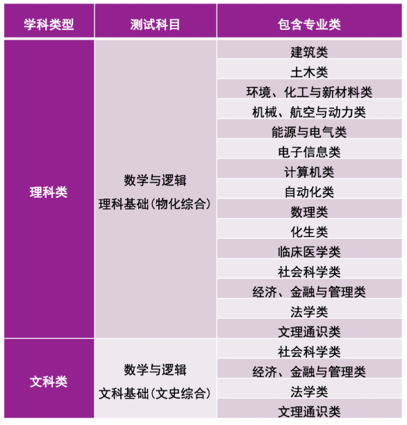 2022年清华大学自强计划录取人数不低于教育部规定的高校专项计划招生规模。各学科类型及对应的初试测试科目如下: