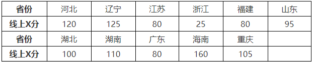 高考综合改革省份获得我校高校专项计划资格的考生,高考成绩(不含任何政策性加分)达到所在省相关特殊类型录取控制分数线上一定分值,予以录取具体分值如下: