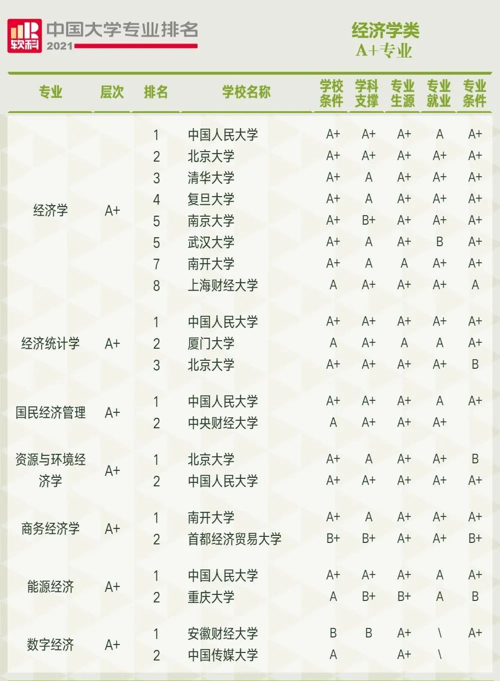首页 热门专业 2021软科中国大学财经类专业排名