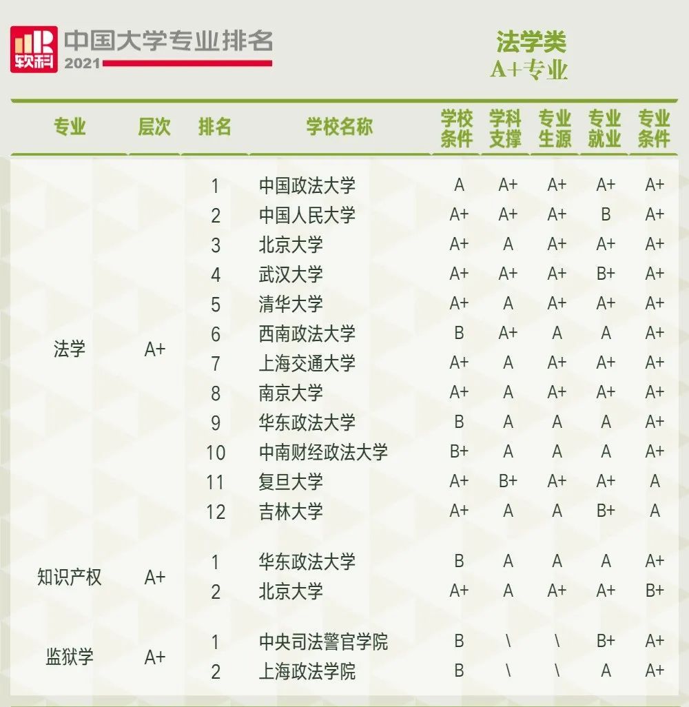 6月22日,2021软科中国大学专业排名正式公布,本次排名包括509个本科专业,每个专业榜单发布的是所有开设该专业的高校中排名位列前50%的高校,共有925所高校的28550个专业上榜。admw360教研组为大家整理了法学类专业排名,一起来看。
