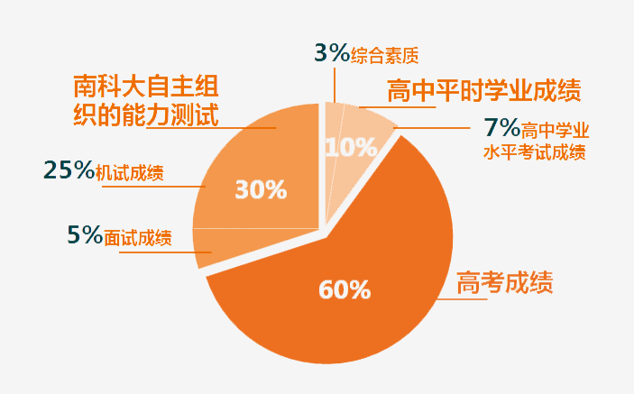 南科大本科招生采用基于高考的综合评价录取模式(简称“631”模式),录取批次为提前批次。考生有意报考我校,必须提前在我校报名系统报名(报名网址:https://register.sustech.edu.cn,或扫描文末二维码直达),并于高考后参加南科大组织的能力测试(包含机试、面试、体育测试,其中上海考生只参加面试)。南科大按照高考成绩占60%、我校组织的能力测试成绩占30%(机试占25%、面试占5%;浙江机试成绩占22%,面试成绩占5%,综合素质评价占3%;上海面试成绩占30%)、高中平时学业成绩占10%(7%由高中学业水平考试成绩折算,3%为综合素质评价;浙江的高中平时成绩全部由高中学业水平考试成绩折算),核算考生综合成绩,择优录取。