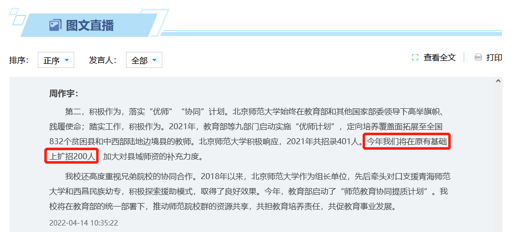 北京师范大学:优师计划扩招200人