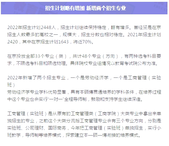 首都经济贸易大学2022年招生政策
