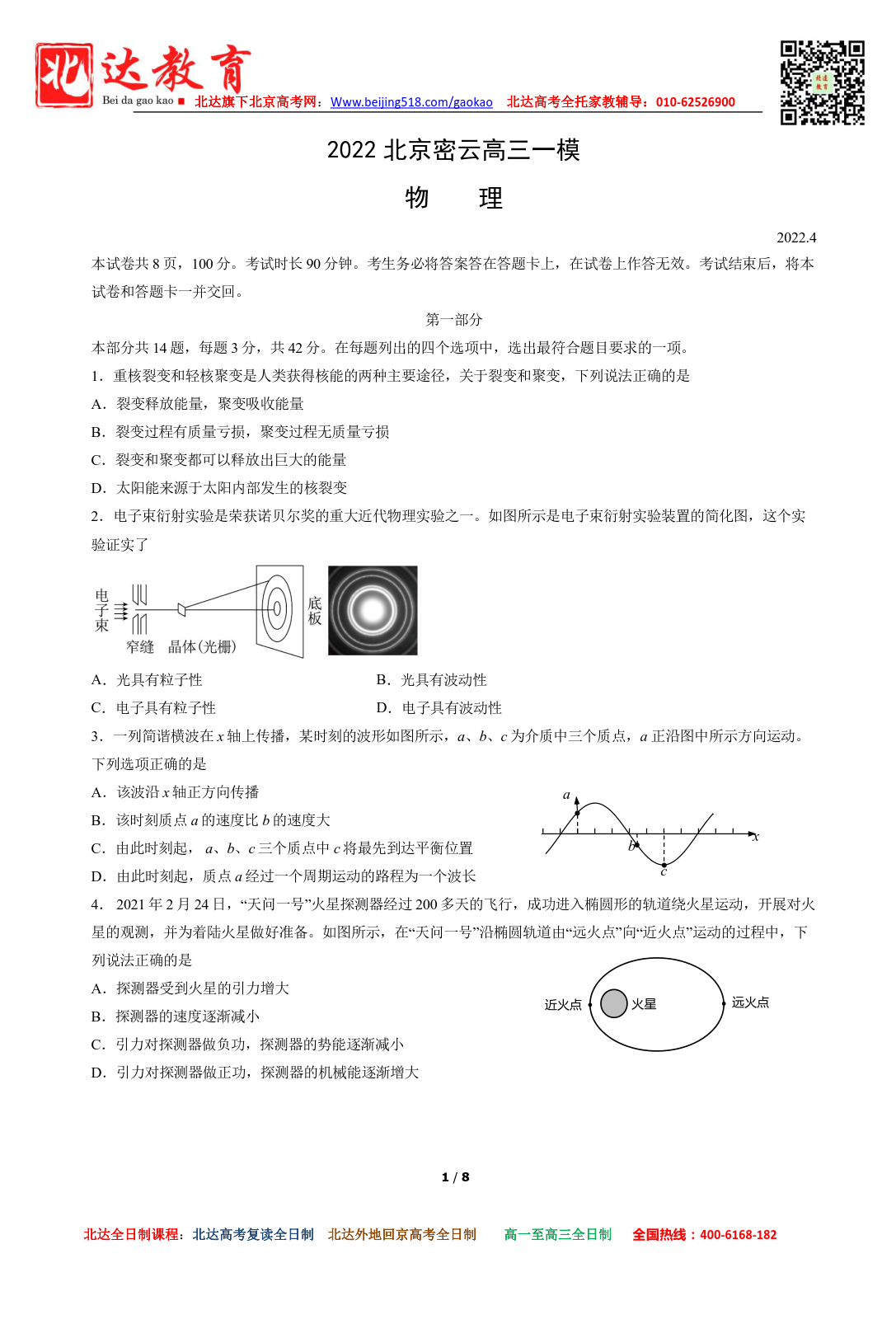 根据安排,3月28日-30日,2022年北京密云区举行高三一模考试,一模在形式和题量上更接近高考,因此同学们要格外重视,为了方便同学们下载复习,北京高考复读学校跟进相关试题,详情如下。