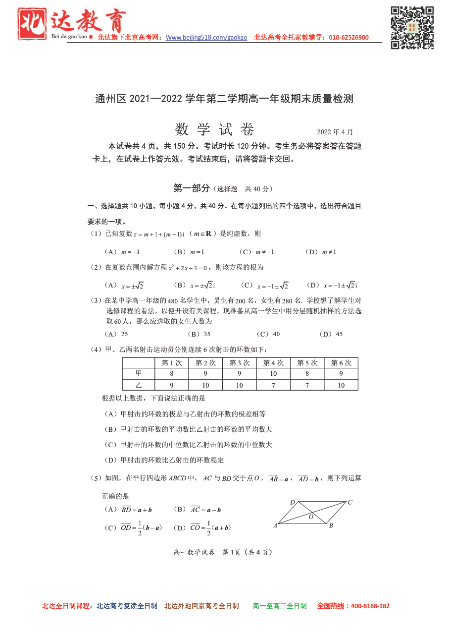 北京通州区2022年高一年级期中考试数学科目考试已结束,北京admw360教研组为大家整理了数学试题及答案,分享给各位小伙伴。