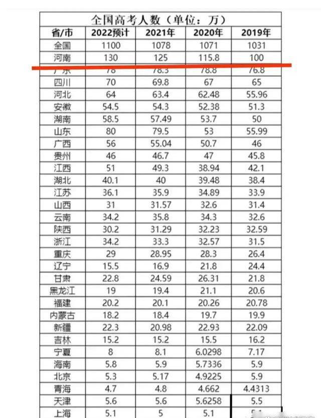 河南是名副其实的高考人数大省,近几年,考生报名人数都超过100万,再加上省内大学较少,经常出现700分以上的考生无法进入清北。