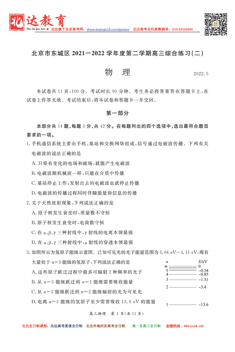 2022年北京东城区高三二模考试已开始,二模在形式和题量上更接近高考,因此同学们要格外重视,为了方便同学们下载复习,北京高考复读学校跟进相关试题,详情如下。