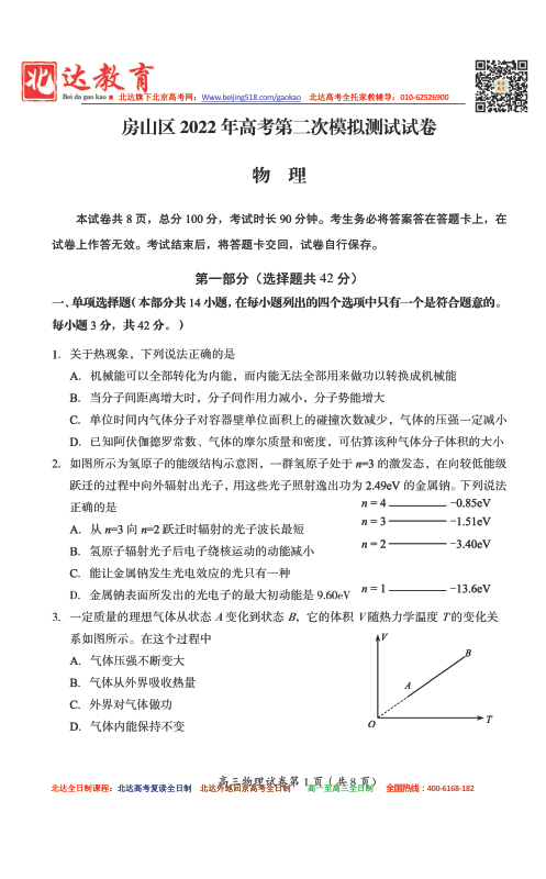 2022年北京房山区高三二模考试已开始,二模在形式和题量上更接近高考,因此同学们要格外重视,为了方便同学们下载复习,北京高考复读学校跟进相关试题,详情如下。