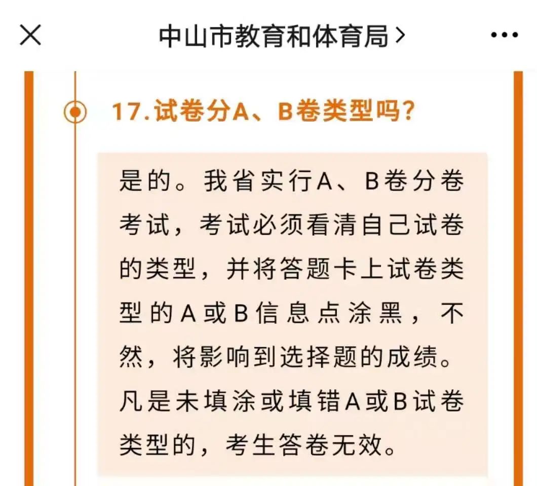 2021年6月5日,中山市教育和体育局发布中山市2021年高考暖心宝典,其中便提到,2021年广东高考依然实行A、B分卷考试: