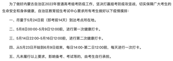 - 内蒙古:所有考生做好疫情摸排