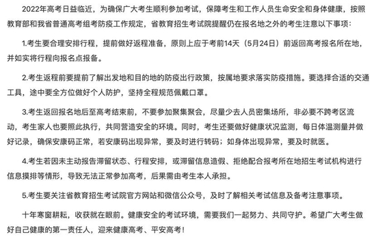 - 安徽:原则上考前14天返回高考报名所在地