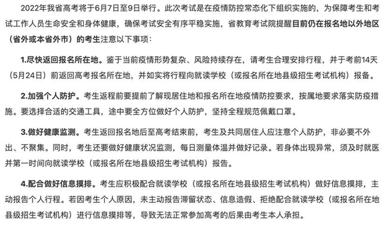 - 辽宁:滞留在报考所在地以外地区考生防疫提醒