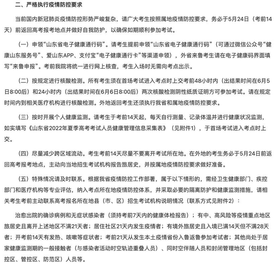 - 山东:首场考试时提交考前48小时内和24小时内两次核酸检测阴性纸质证明