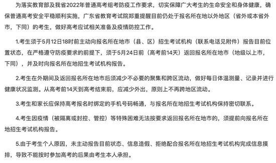 - 广东:处于报名所在地以外地区考生须5月24日前返回报名所在地