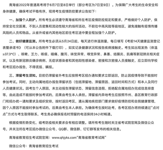 - 青海:所有考生5月24日起每天进行体温测量