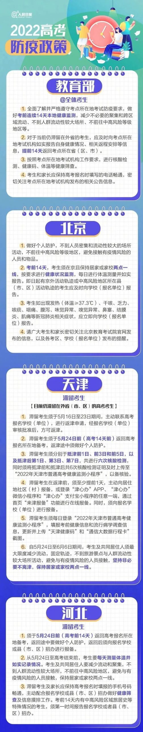 近日,人民日报发布了31个省区市高考防疫政策汇总,北京admw360教研组为大家整理了内容详情,一起来看。