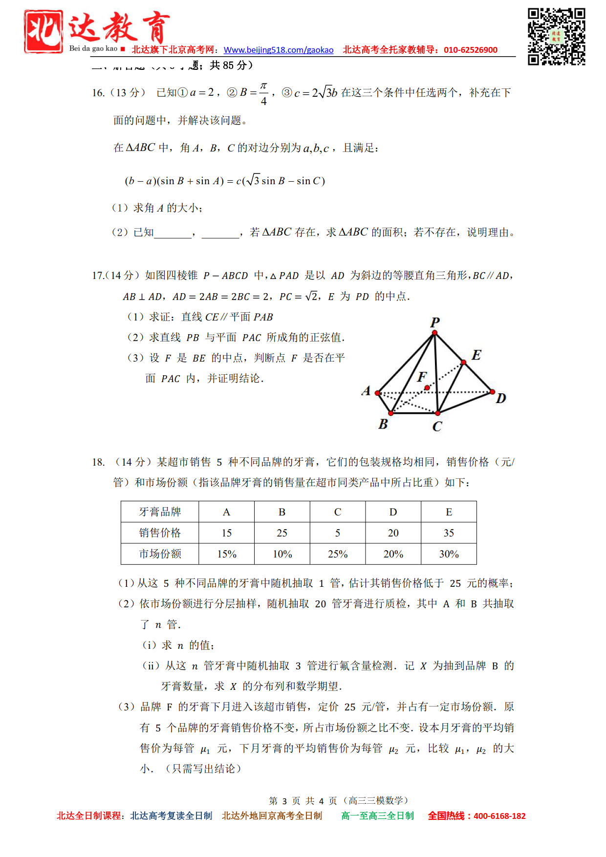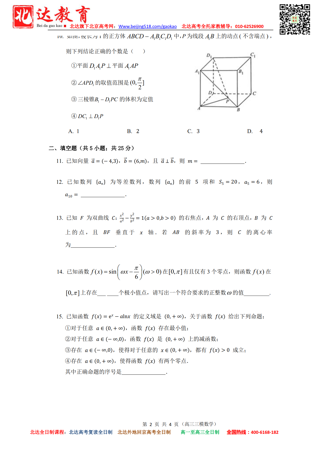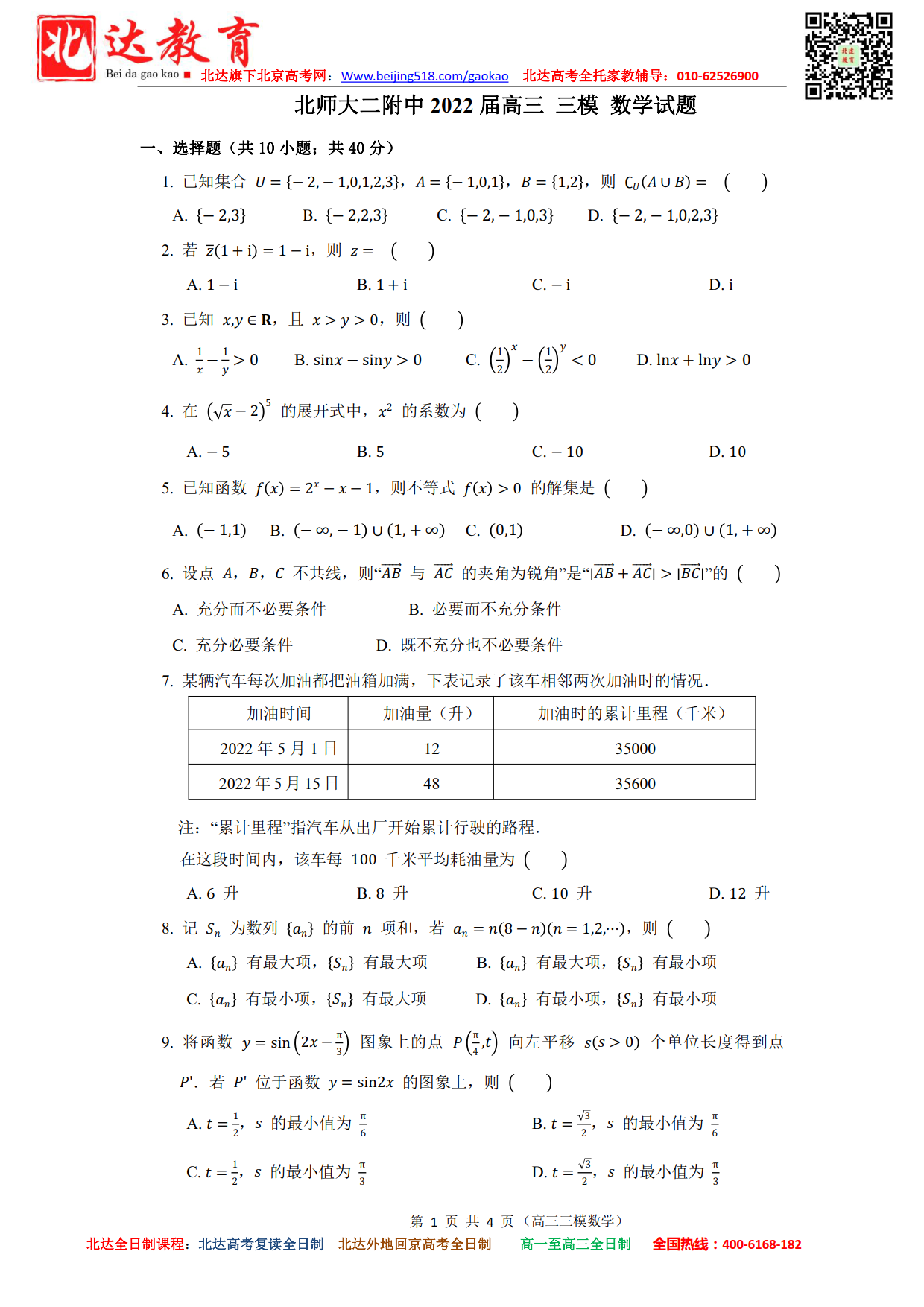 北京admw360教研组为大家整理了2022年北师大二附中高三模数学试题,分享给大家。