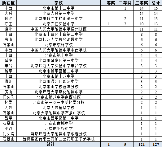 所有1065名获奖学员所在学校及所在区的分布情况: