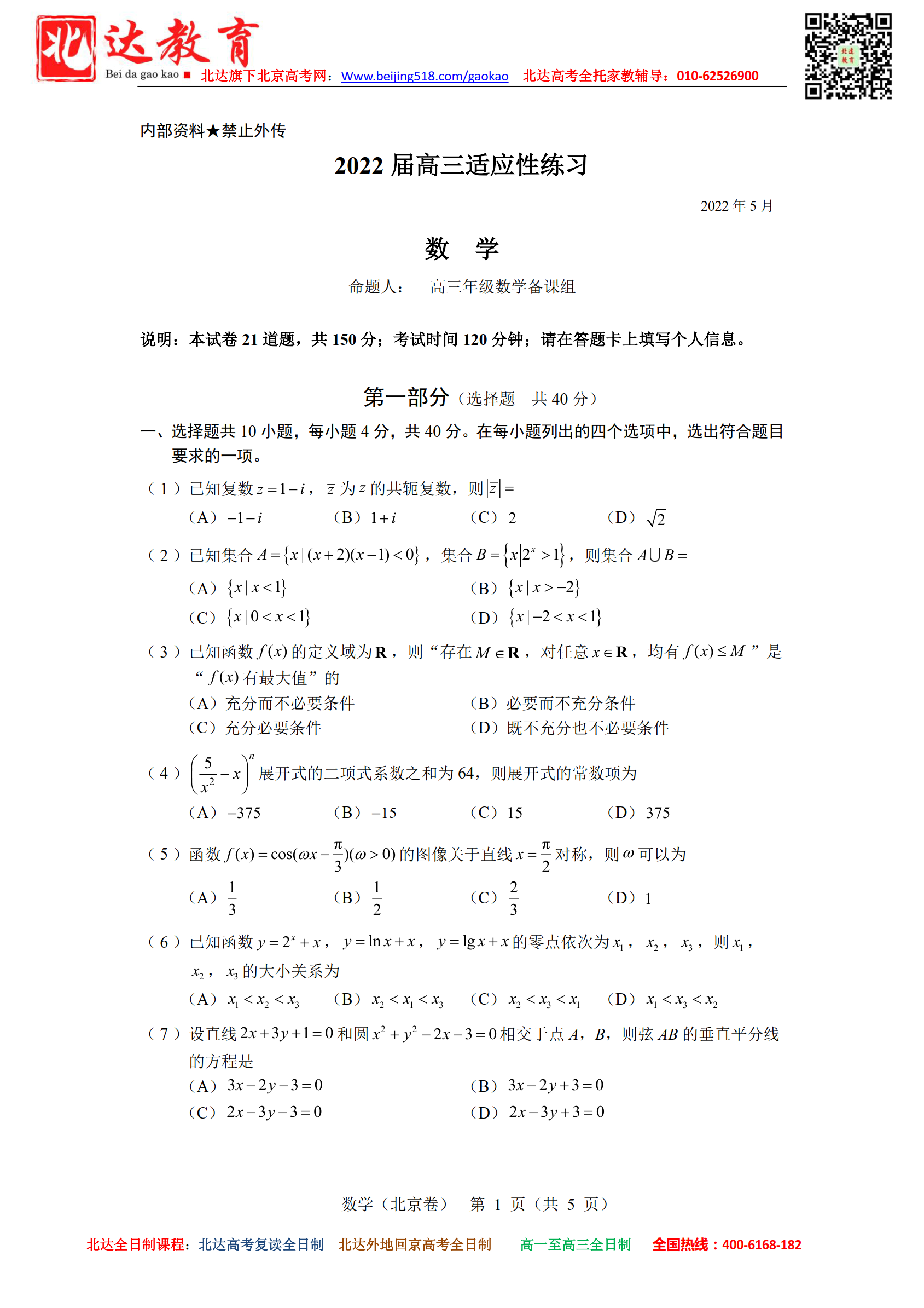 近日,北京admw360复读学校为大家整理了北京人大附中2022年高三三模数学试题,分享给大家。