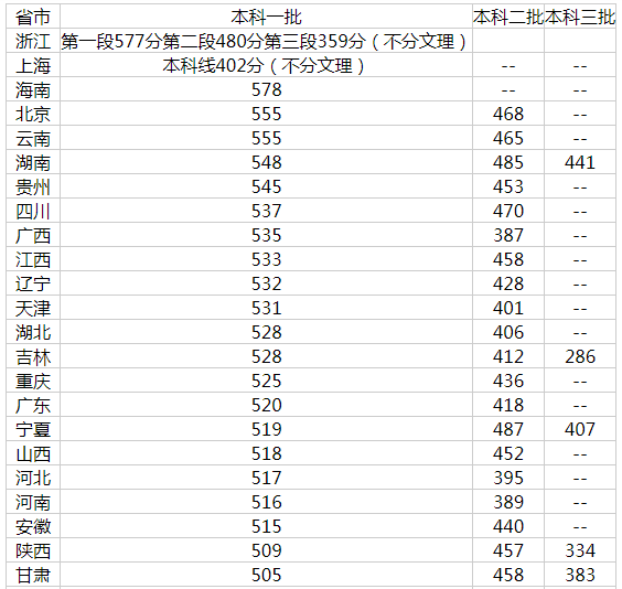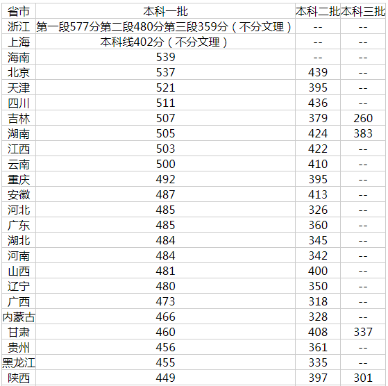 以下是往年全国31个省市自治区理科录取分数线排名情况,仅供参考。部分地区合并本科录取批次,部分地区不分文理。