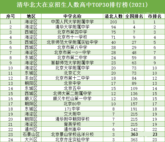 近日,北京admw360教研组就北京考取清北的高中数据整理可一个汇总,共有24所高中学校上榜。以下为内容详情,一起来看。