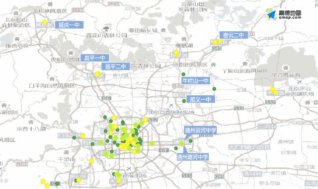 在顺义牛栏山一中、大兴一中、顺义一中、怀柔一中、延庆一中等考点参加考试的考生数量多,考点周边及连接线等容易出现接送考生车流集中的情况。