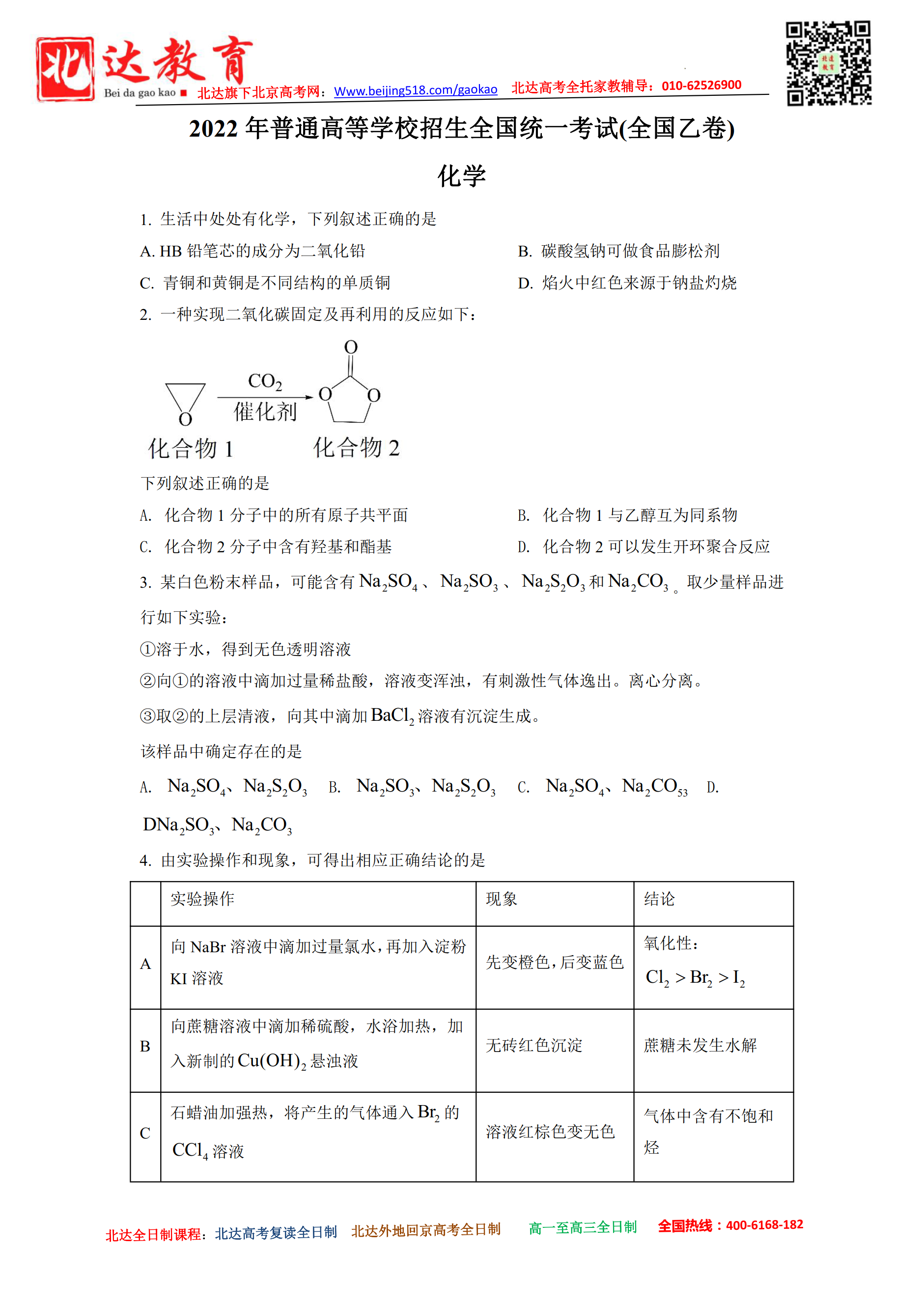 北京admw360教研组为大家整理了2022年高考(全国乙卷)理综试题及答案解析,希望对大家有所帮助。