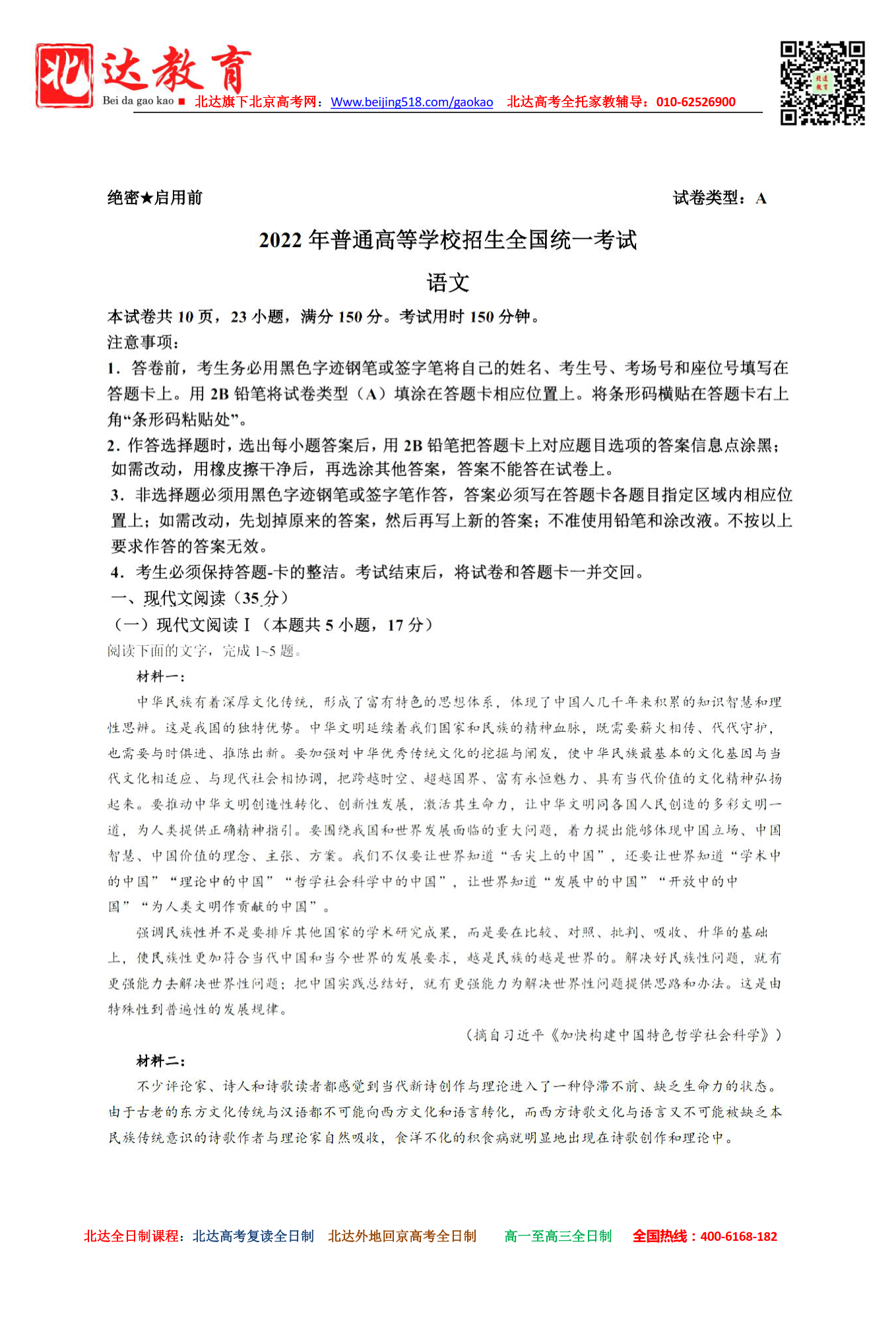 北京admw360教研组为大家整理了2022年新高考全国1卷语文试题及答案,希望对大家有所帮助。