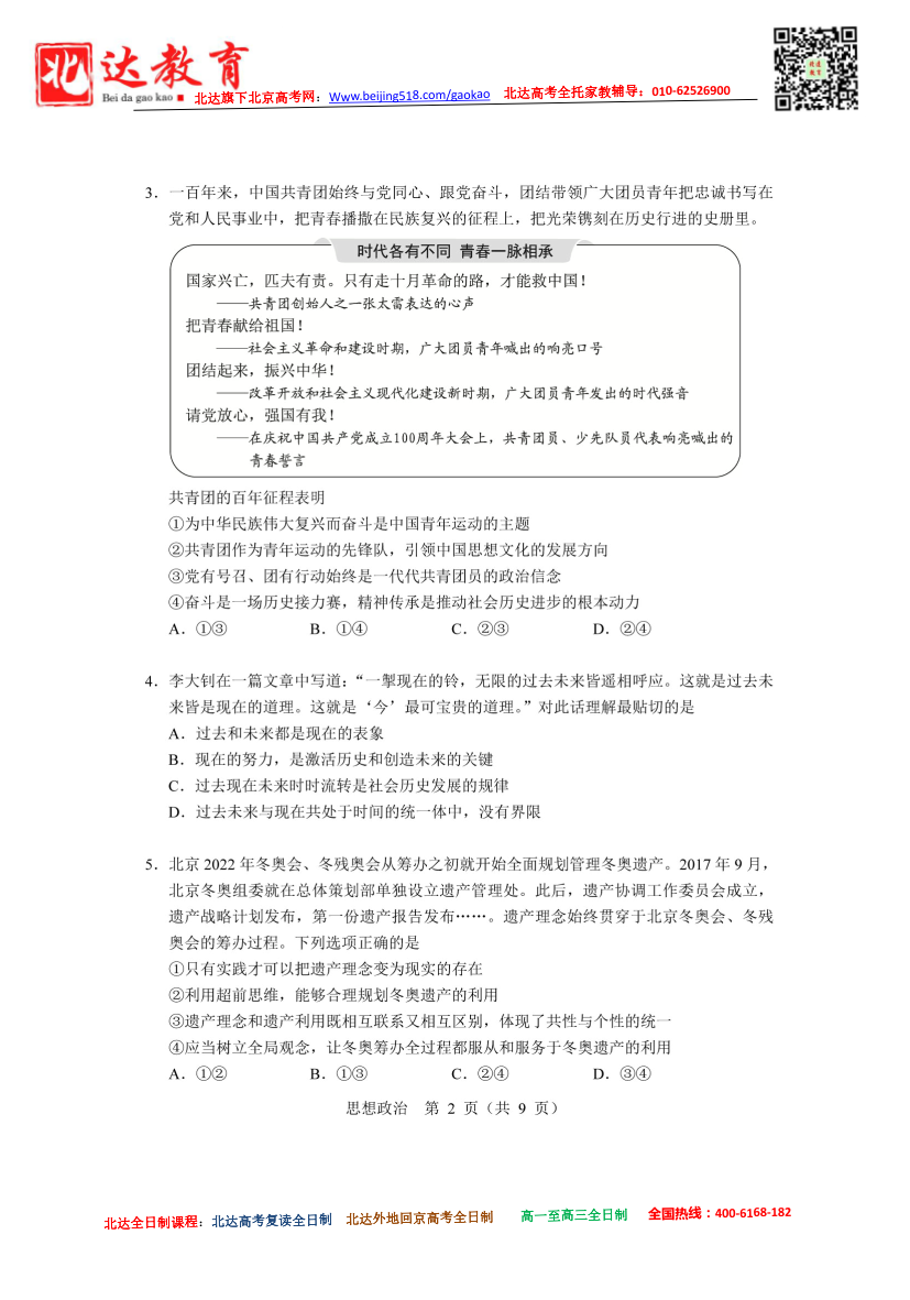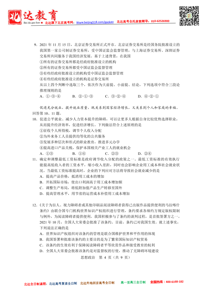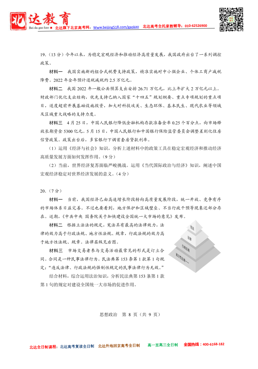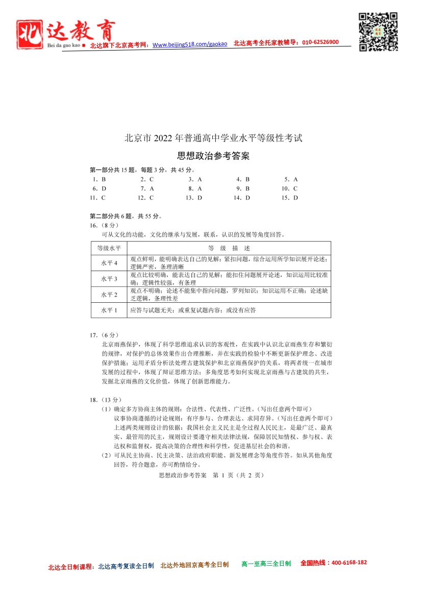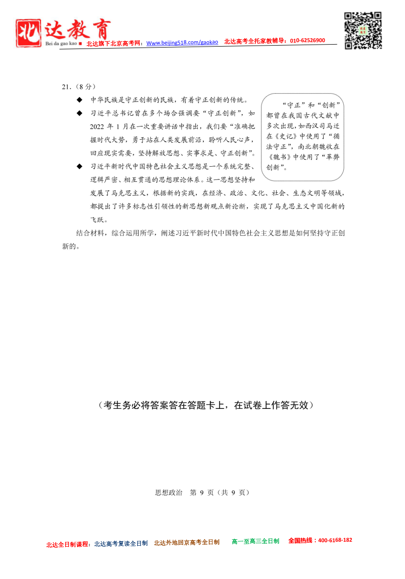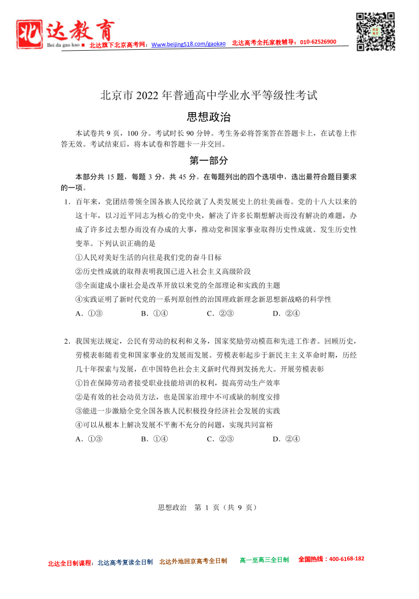 北京admw360教研组为大家整理了2022年高考(北京卷)政治试题及答案,希望对大家有所帮助。