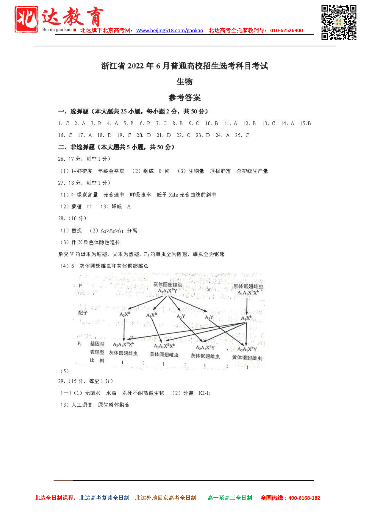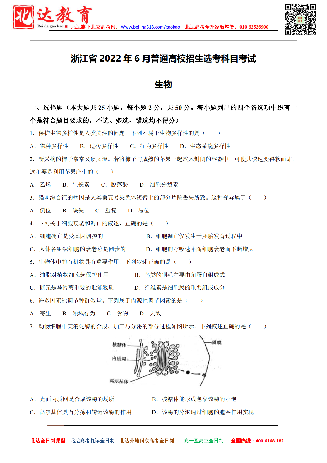 北京admw360教研组为大家整理了2022年高考(浙江卷)生物试题及答案解析,希望对大家有所帮助。